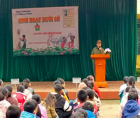 Ngày 12/12/2022 Tổ chức sinh hoạt dưới cờ với chủ điểm “Uống nước nhớ nguồn” nói chuyện truyến thống về ngày thành lập quân đội Việt Nam các em Đội viên, nhi đồng được gặp các bác là cựu thanh niên xung phong đến kể chuyện và giao lưu văn nghệ cùng liên đội và nhà trường.